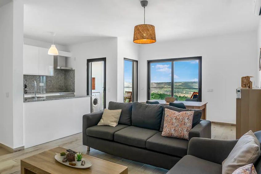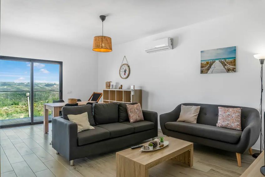 Apartamento novo composto 2 quartos com vista mar e 2 casas de banho, 1 das quais com casa de banho, sala de estar e jantar espaçosa e cozinha totalmente equipada, varanda com uma fantástica vista sobre as montanhas do Parque Natural da Costa Vicentina.