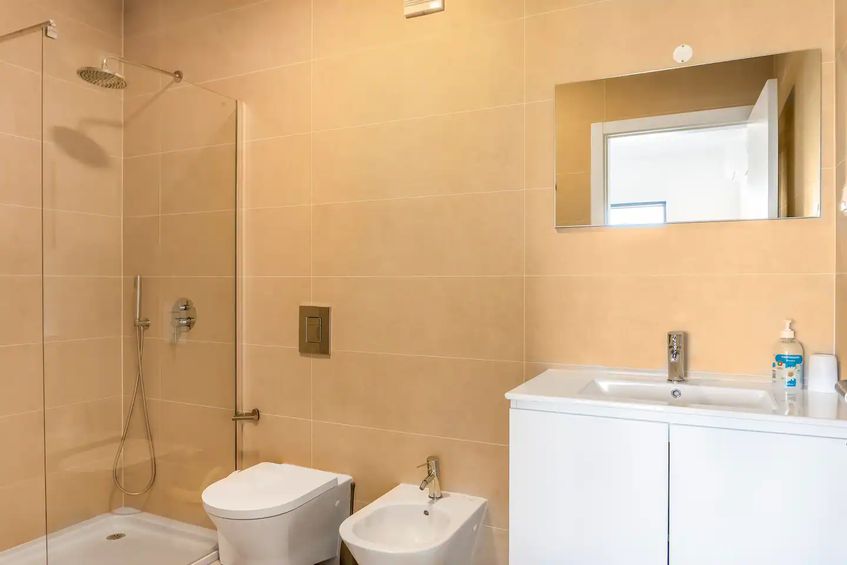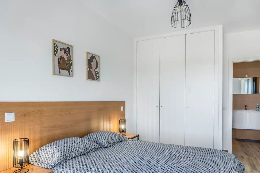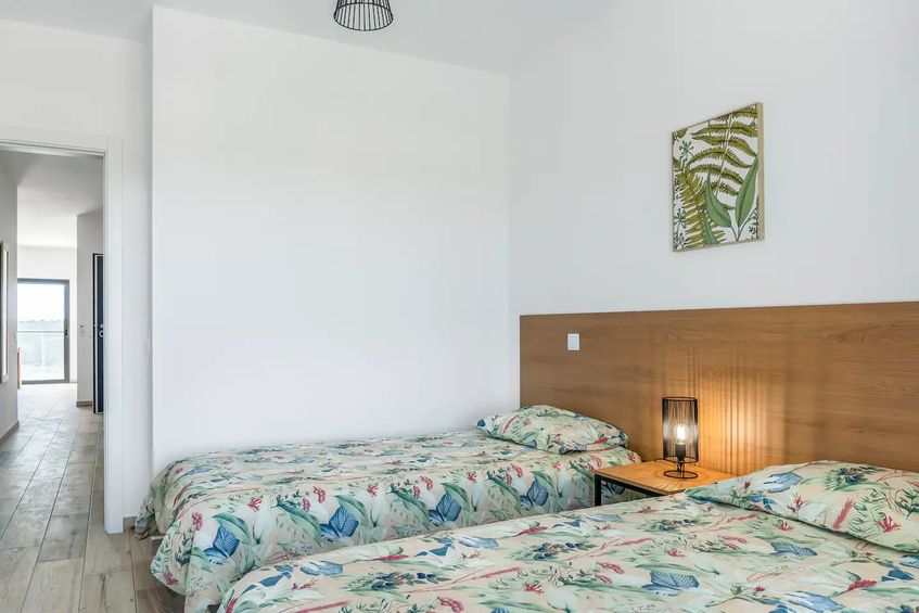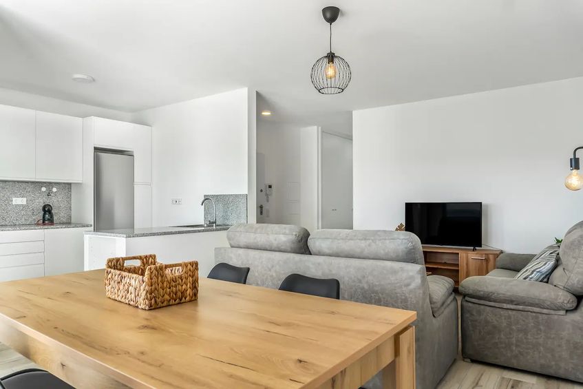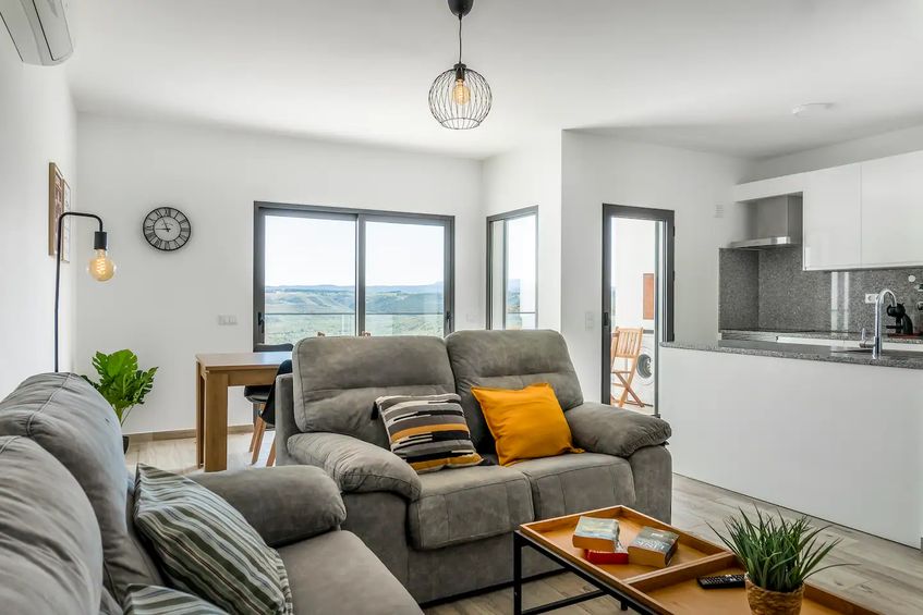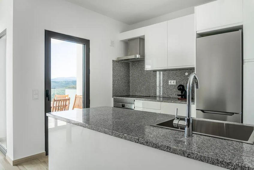 New flat with 2 bedrooms and 2 bathrooms, 1 of which with bathroom, spacious living and dining room and fully equipped kitchen, balcony with a fantastic view over the mountains of the Vicentine Coast Natural Park.