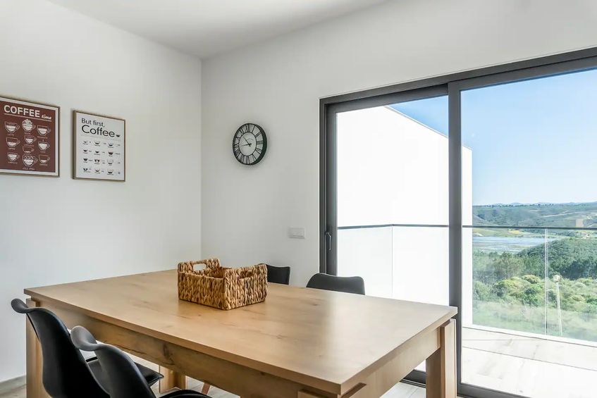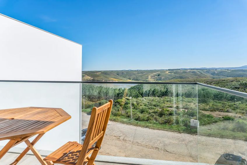 Apartamento novo com 2 quartos e 2 casas de banho, 1 das quais com casa de banho, sala de estar e jantar espaçosa e cozinha totalmente equipada, varanda com uma fantástica vista sobre as montanhas do Parque Natural da Costa Vicentina.