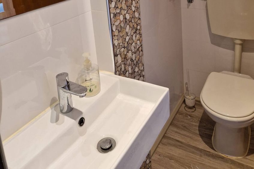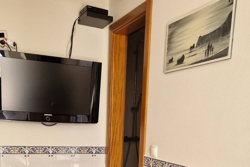 We also have a hairdryer, cable TV and Wi-Fi, as well as a 1.30m wide sofa bed made of hard sponge, perfect for an adult/child to sleep on.