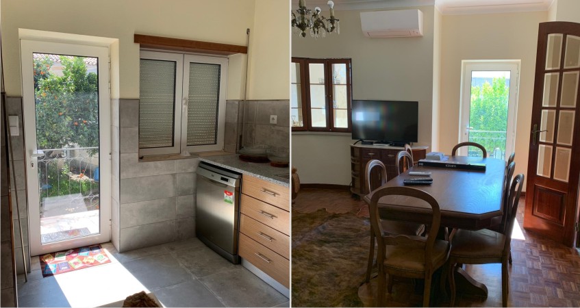 A casa tem 2 quartos com cama de casal, um wc, uma sala e uma cozinha. Existe outro quarto com 2 camas individuais , mas não pode ser anunciado, pelo limite de 4 pax para um wc. A casa tem wifi/TV/maquina de lavar louça e roupa (esta no exterior)/ forno electrico e fogão de indução/frigorifico, bem como a palamenta para 12 pessoas. Os hospedes têm direito a roupa da cama e toalhas de banho e papel higiénico. A casa contem o kit de segurança exigido para o AL.