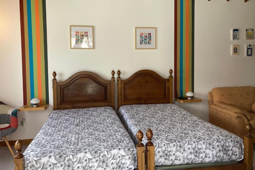 Casa da Isabelinha has a small independent apartment, T0, with two single beds, kitchenette, air conditioning, TV, Wi-Fi, wardrobe and bathroom with shower, the entrance is independent. It also has a generously sized suite, with two balconies and sea and garden views, a large bathroom. The suite with double bed is equipped with TV, Wi-fi, fridge, kettle, coffee machine, glasses and cups. One bedroom with sea and garden view, outside bathroom.