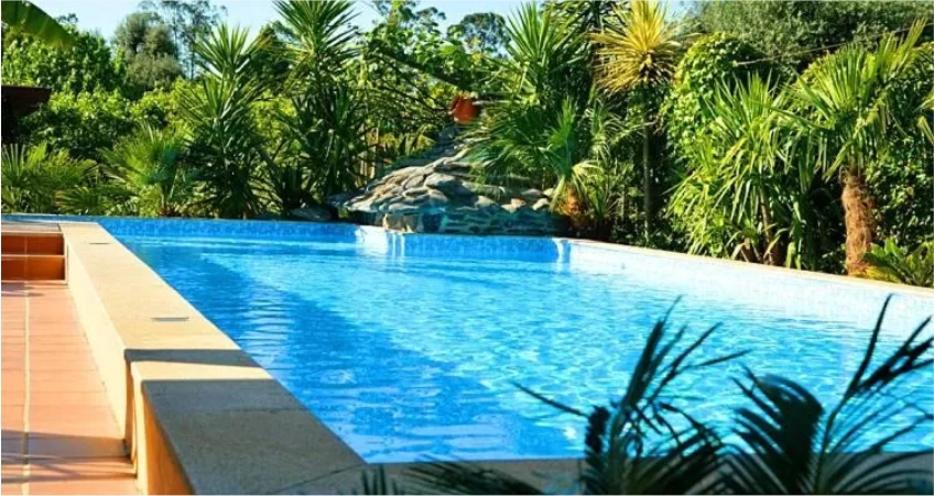 Quintinha com casa renovada em 2008, toda a casa tem ar condicionado, 6 quartos com casa de banho individual, piscina privativa para adultos e outra para crianças com cascata e queda da água na piscina.