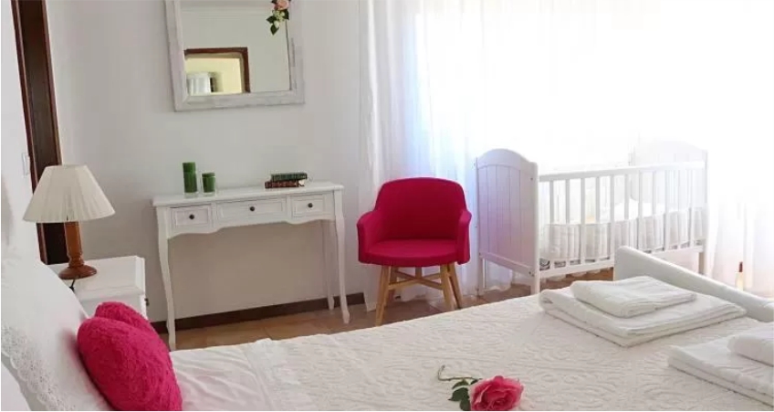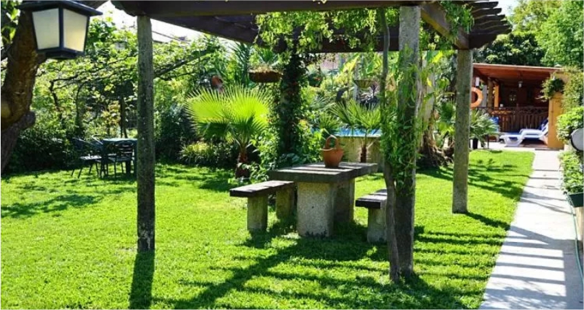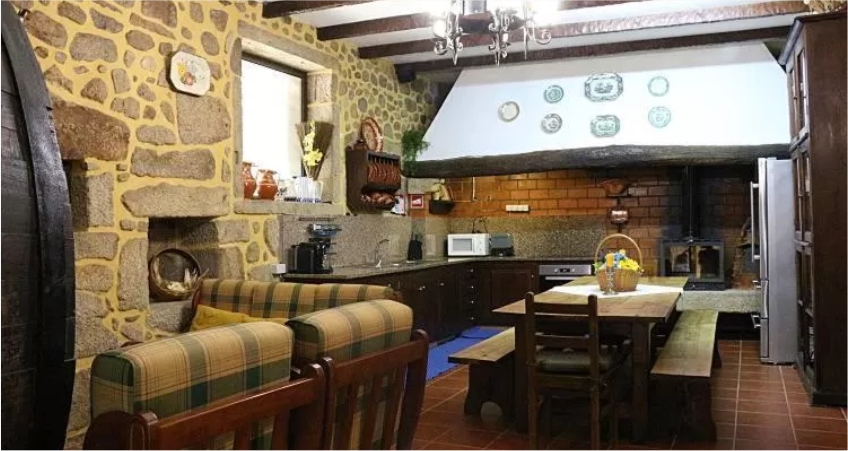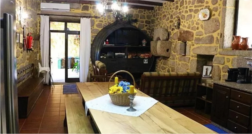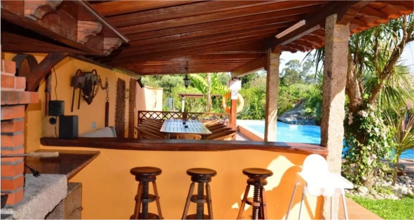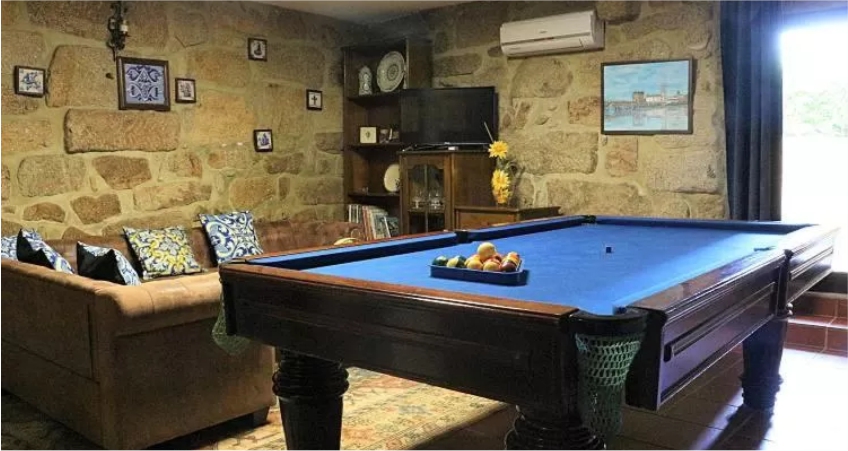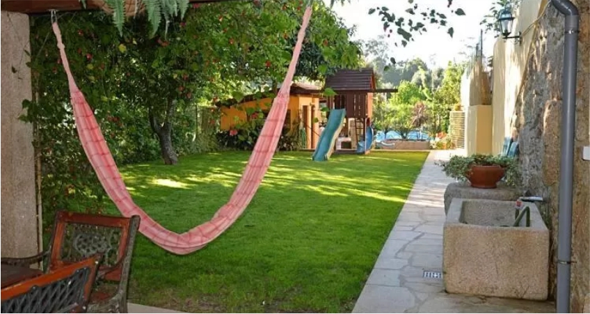 Barbecue com cozinha, bar, lago com uma ponte em madeira, uma cascata e patos, horta biológica e jardim de ervas aromáticas/chás para consumo do inquilino, parque infantil, matraquilhos, mesa ping-pong, oito bicicletas, animais do campo.