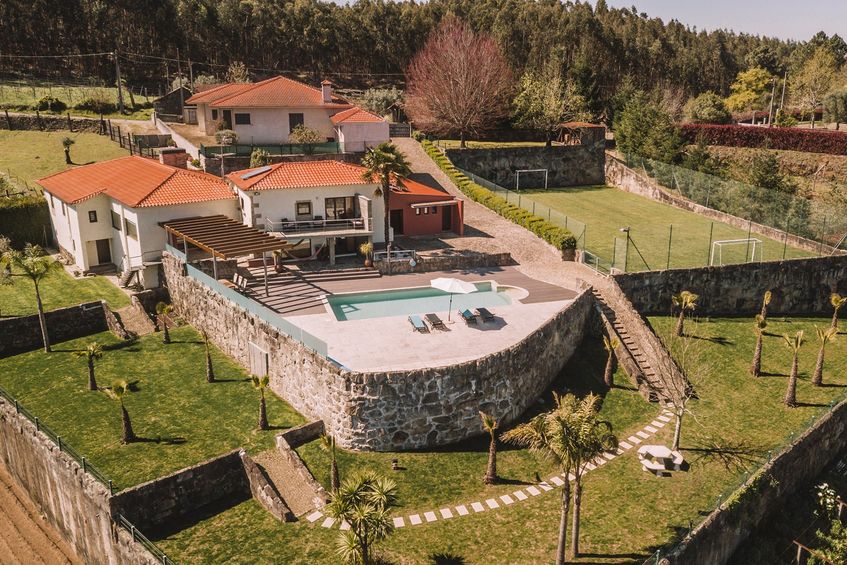 Na área exterior, além da piscina e da zona de espreguiçadeiras, existe um grande jardim, um campo de futebol relvado e mesas de ping-pong e de matraquilhos. Também é possível fazer refeições ao ar livre graças à zona de churrasco e à mesa junto à piscina (e pode até dar mais sabor aos seus pratos graças à nossa hortinha de ervas aromáticas).