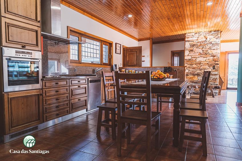 A Casa das Santiagas tem três quartos de casal (um deles suite), mais um salão com três camas individuais. Além da casa de banho na suite, existem mais três, sendo uma delas de serviço. A cozinha é muito ampla e está totalmente equipada. Existe ainda uma sala de jantar, uma sala de estar e uma lavandaria.