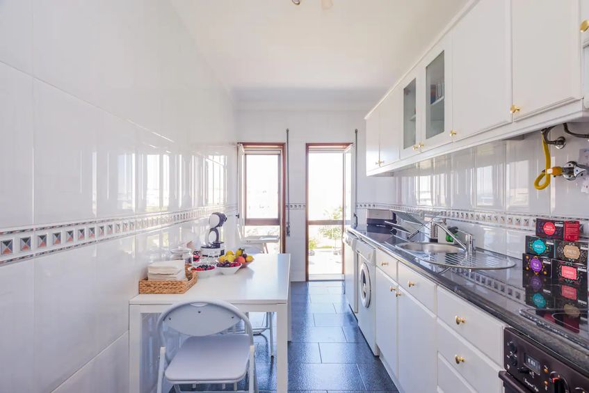 - Cozinha completa com frigorífico e congelador, máquina de lavar roupa, máquina de lavar louça e fogão eléctrico com forno