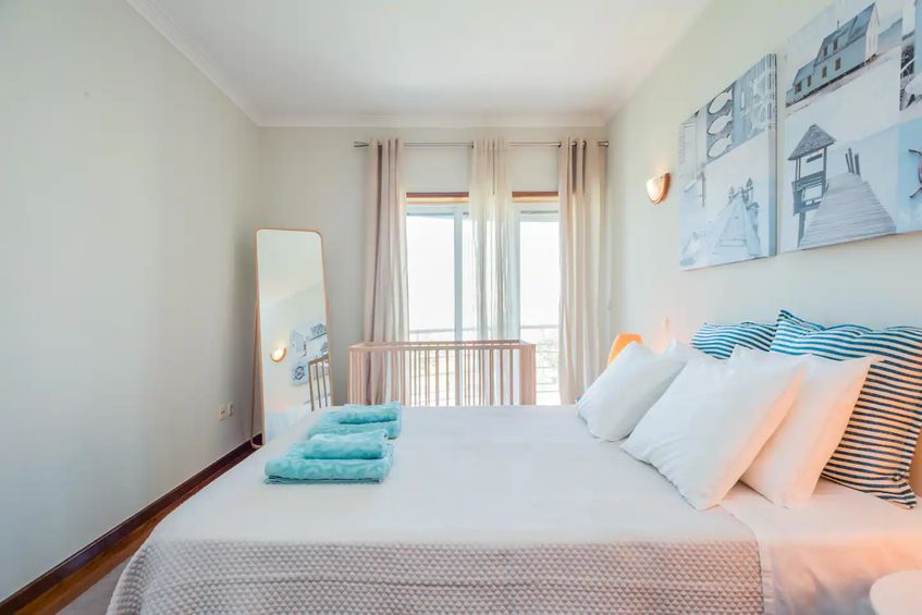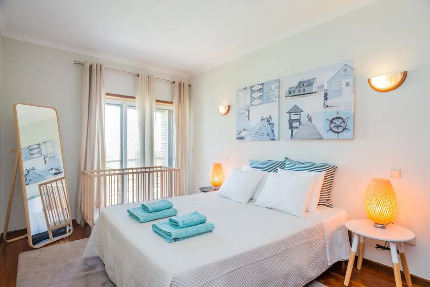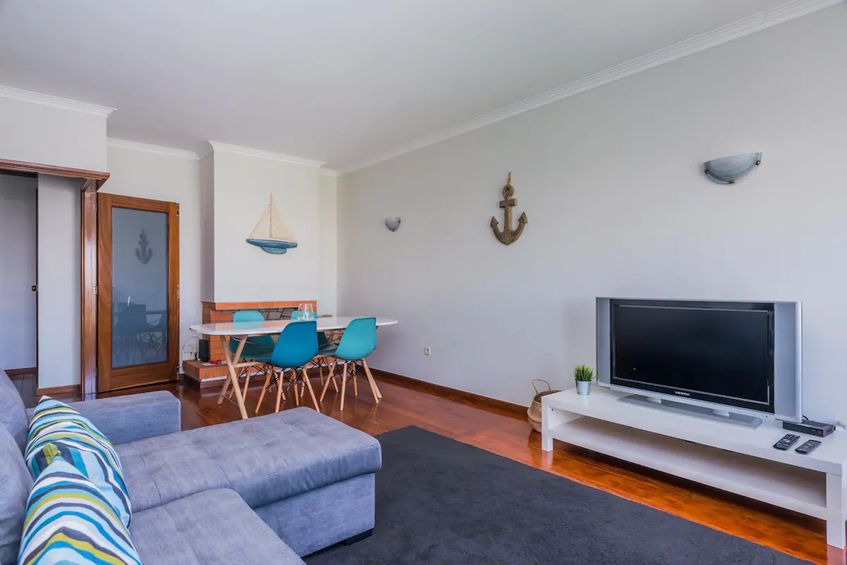 Cozy Beach House front with Rooftop. A modern style and freshly renovated apartment in Vila do Conde with 180 degree views of the Atlantic Ocean from the Rooftop with free parking in front . The apartment features a king size bed in the room and one sofa for sleep 2 in the living room . Free unlimited 100 Mbps WiFi speed and a 40inch LED TV with 140 channels.