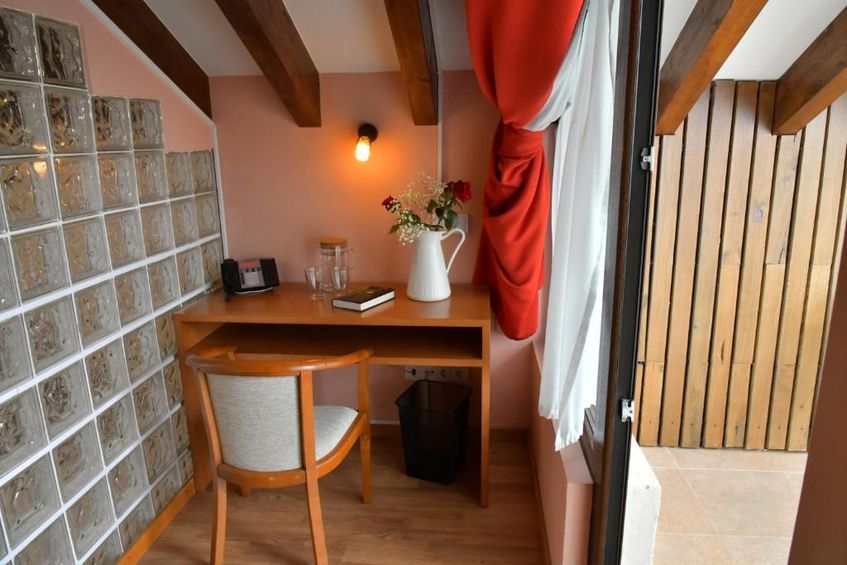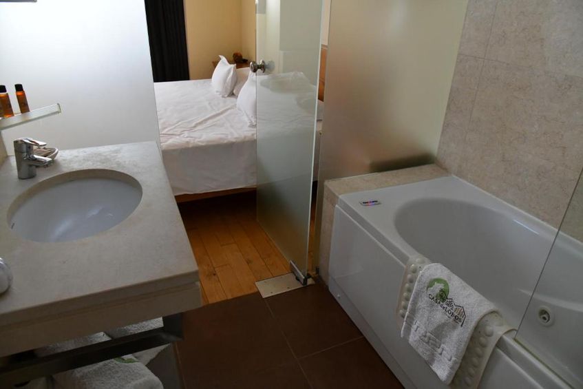 Diferença entre quartos standard e quarto plus: o plus possui banheira de hidromassagem e 2 janelas, permanecendo numa delas as antigas namoradeiras do edifício antigo.
