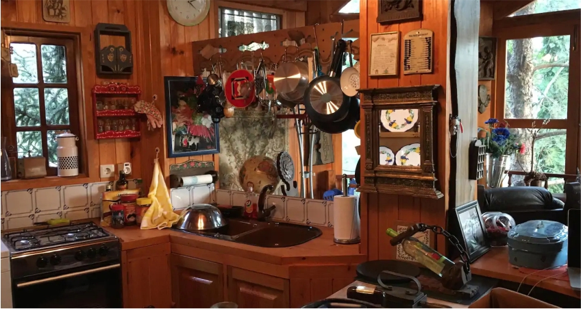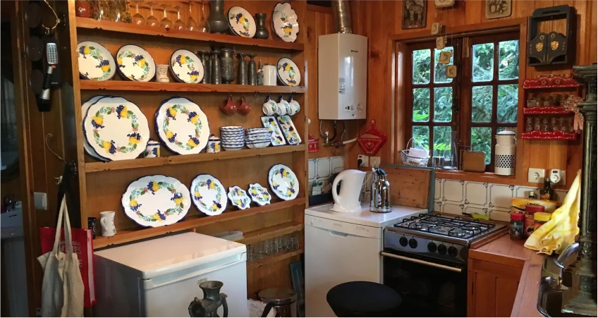 O espaço é dotado de uma vista deslumbrante sobre a encosta. Tem uma decoração/ambiente únicos e faculta um bem-estar repleto de silêncio. O espaço é ainda do tipo cabana gótica, completo e com espaços comuns: as camas, a kitchnet, a casa de banho com uma porta divisória, e um deslumbrante espaço, sala de estar de onde se pode disfrutar de uma experiência única, de vista para o rio e para o jardim exterior e montanhas ao fundo, no horizonte! O hóspede tem acesso a uma boa qualidade de Internet e televisão.