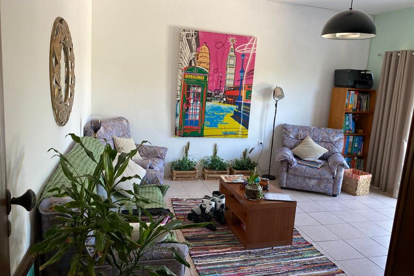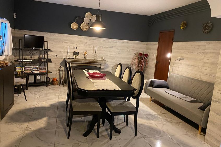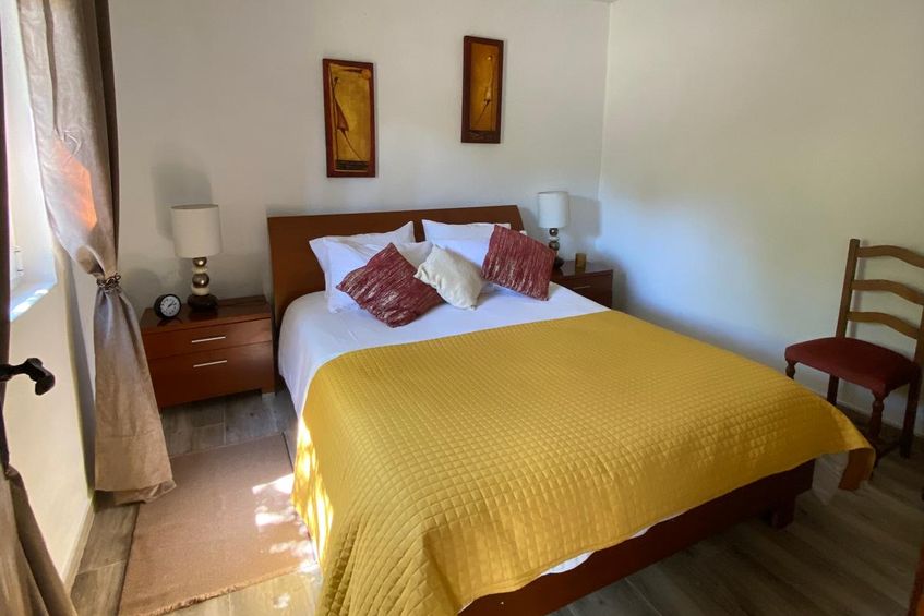 Casa do Massarouco has a double and a single bedroom, a bathroom (if you need it, I can give you access to another one, which is unavailable at the moment as it's in the entrance hall), a kitchen and living room equipped with crockery and appliances (dishwasher, fridge, gas cooker, microwave, coffee machine, electric kettle, hand blender, toaster...), a fireplace and a television. There is also a reading room with a library available.