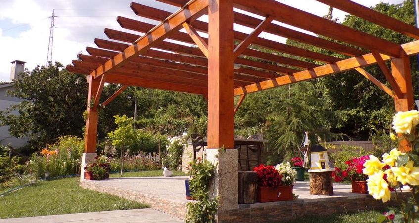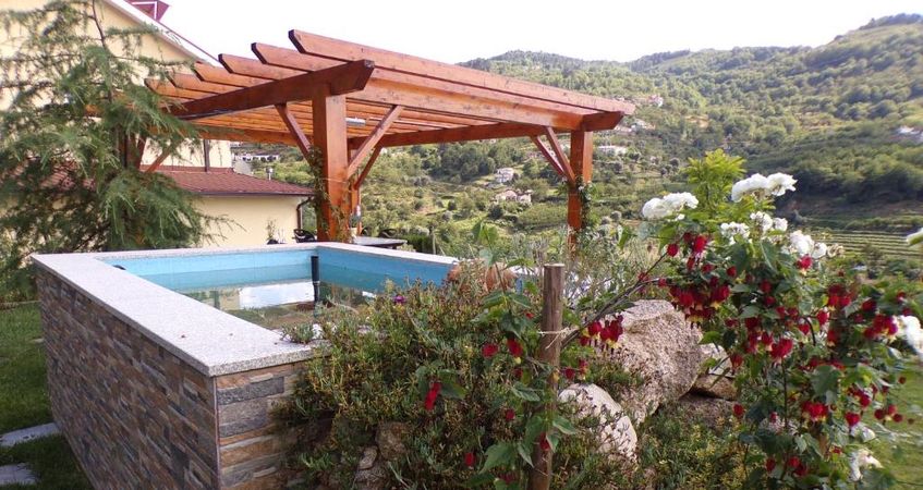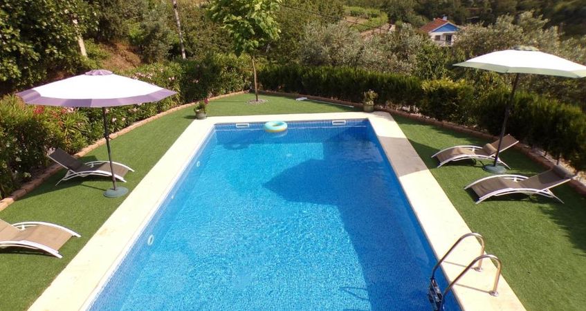 No exterior tem uma fabulosa piscina com espreguiçadeiras, duche, churrasqueira, pérgula com mesa para refeições, jardim, pequena horta, logradouro e garagem box para uma viatura.