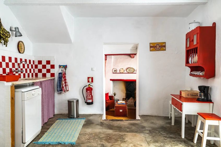 The house has a versatile social space, with a small patio ideal for summer breakfasts and a typical Alentejo fireplace for winter evenings.