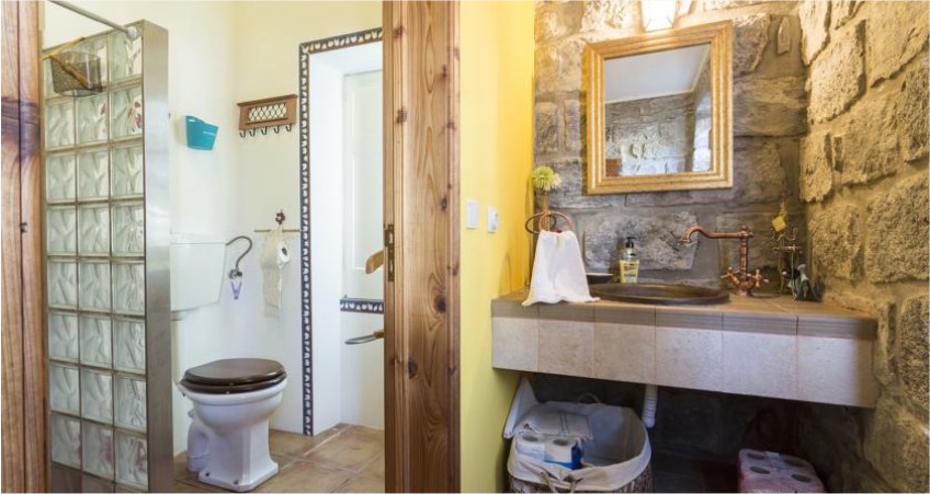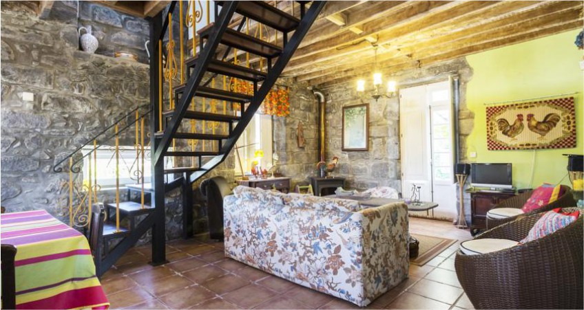 A casa tem 2 andares. No primeiro andar há um espaço aberto com sala de jantar e sala de estar, cozinha totalmente equipada e um banheiro. No segundo andar há 3 quartos, um com cama de casal e os outros 2 quartos com 2 camas de solteiro cada. Há uma grande casa de banho com janela.