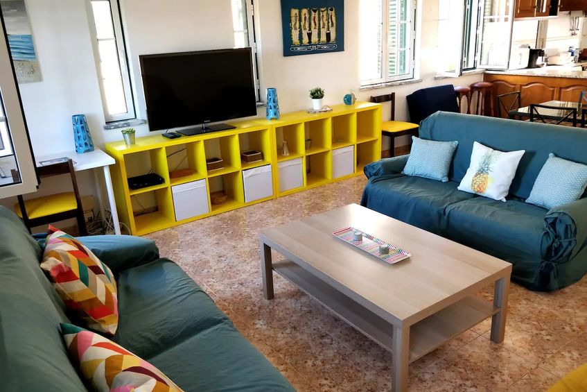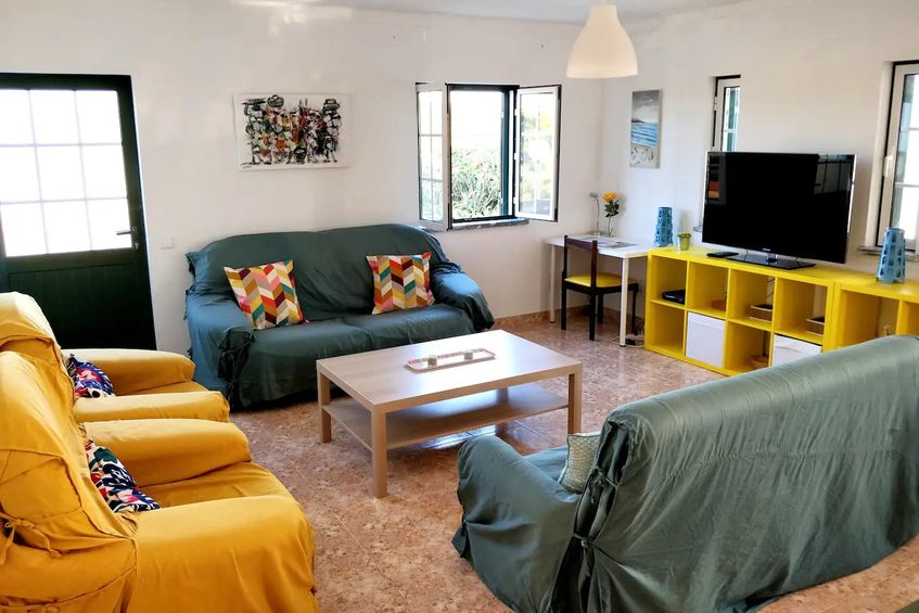Each floor has 3 big and confy bedrooms (each with a double bed and an extra single bed in one of them for a total of 7 people). The living room and kitchen are one single big space with no physical separation between for a great conviviality, making the space more welcoming and communication easier, particularly with groups. There's a single bathroom with a bathtub. Our house has all the furniture and equipment needed, such as a dishwasher and washing machine, a fridge, microwave oven, toaster, coffee machine with capsules, juicer, immersion blender, iron and ironing board. There's an HD TV (not a smart tv). Every room has furniture to store clothes and there's one with a desk. Its outdoor space is great for barbecues, having lunch below the awning or seat on the balcony overlooking the pine forest and have a nap with the healthy Alentejo's air.