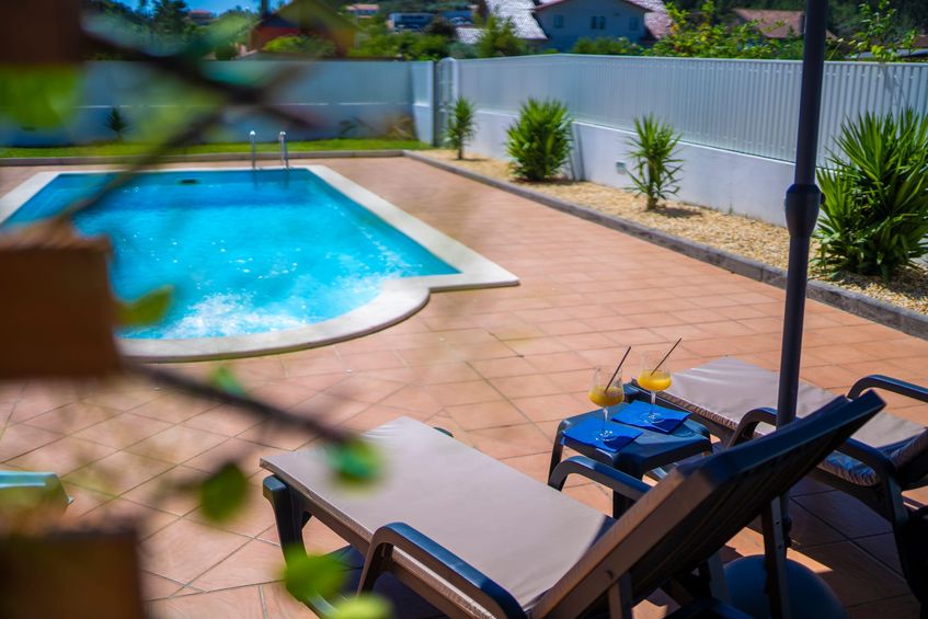 A special highlight of the property is the rustic bar situated next to the pool, where guests can enjoy refreshing drinks and snacks while soaking up the sun. The property is completely walled, guaranteeing privacy and security for visitors, and offers private parking to comfortably accommodate guests' vehicles.