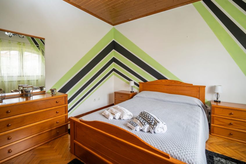 The holiday home consists of four bedrooms, one of which is a suite with a private balcony, two spacious bedrooms for couples and a single room, ensuring comfortable space for all guests.