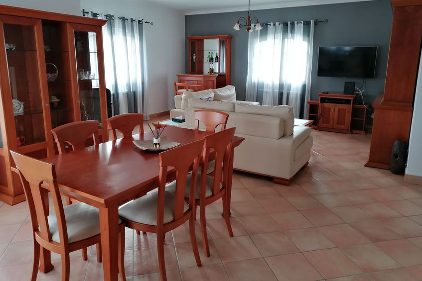 A área social da casa é generosa, com uma cozinha bem equipada integrada a uma sala de estar e de jantar , proporcionando um ambiente perfeito para refeições em família ou entre amigos. Além disso, há uma outra casa de banho disponível para maior comodidade dos hóspedes.