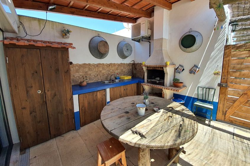 A casa é independente e nas traseiras existe um pequeno quintal onde pode usufruir de churrasqueira e área de lazer ao ar livre.