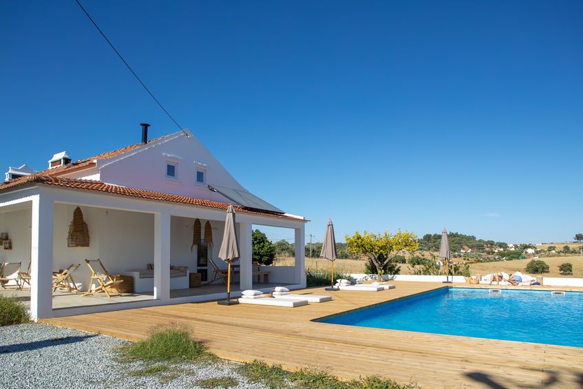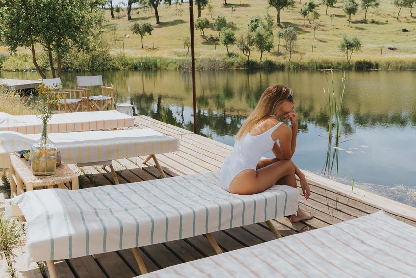 Here you can enjoy the comfort and safety we provide, but also the endless activities that the space had to offer, including our large swimming pool with a splendid view of the Alentejo fields, a games room with countless amusements at your disposal, a lake where you can learn about natural swimming pools, a 5km trail for you to walk or bike around the estate, birdwatching areas where you can learn about the biodiversity of the area, a learning space where we offer derivative workshops, and a local store where you can acquire tokens of the memories you made in Cucumbi during your wonderful vacation.