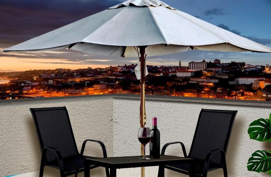 O alojamento dispõe de um terraço amplo de 60 m², onde os hóspedes podem relaxar e desfrutar de uma paisagem deslumbrante sobre o rio Douro, as pontes D. Luís e Arrábida, e o pôr do sol sobre os telhados do Porto.