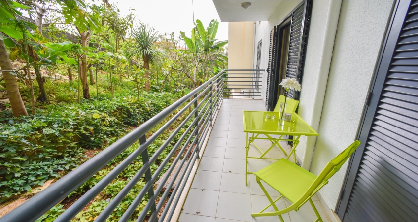 Tem uma varanda agradável para relaxar. Muito aconchegante, muito particular.