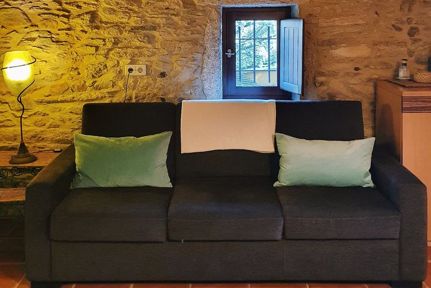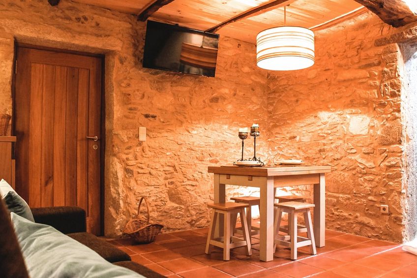 A casa possui 3 quartos, sala e cozinha completa; um espaço exterior com telheiro e grelhador com forno a lenha e com estacionamento.