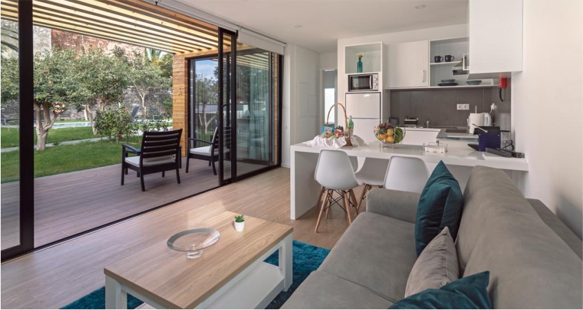 All the houses have full bathroom, equipped kitchen, living room, a private backyard, air conditioning, TV and Internet.