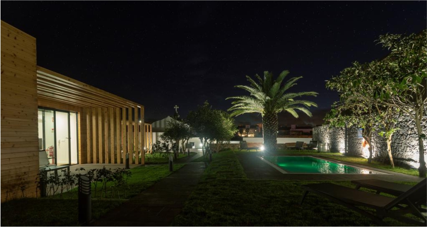 As zonas exteriores da quinta proporcionam um ambiente tipicamente construídos em pedra basáltica, com acesso garantido a pessoas com mobilidade reduzida, piscina, estacionamento e um excelente contato com flores e árvores de fruto.