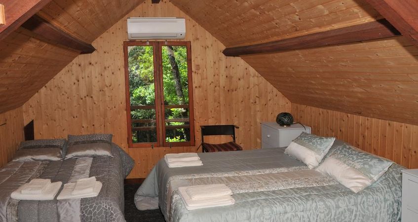 A Cabana é uma fantástica casa de madeira com dois pisos, inserida no meio da natureza e com acomodações que permitem acomodar até seis pessoas.