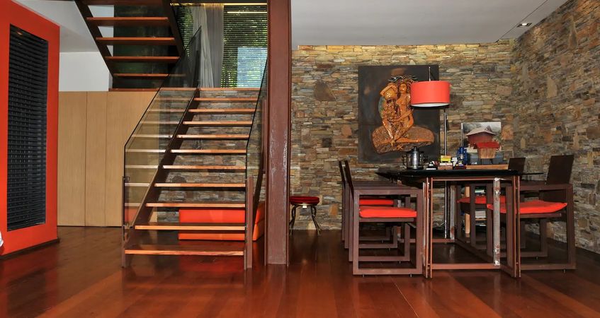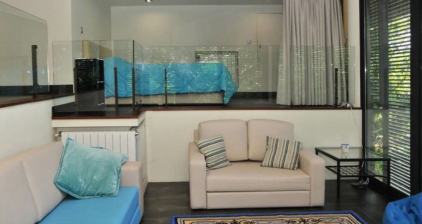 Possui três pisos e acomodações que permitem acomodar até seis pessoas.