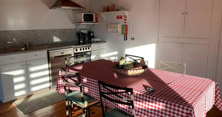 No primeiro piso, encontra-se a cozinha totalmente equipada e com todos os utensílios necessários na preparação de refeições e uma sala de refeições. Na sala de estar, existe uma lareira que é muito convidativa nos dias mais frios. Tem igualmente à disposição, uma máquina de café para cápsulas Nespresso, ou compatíveis.
