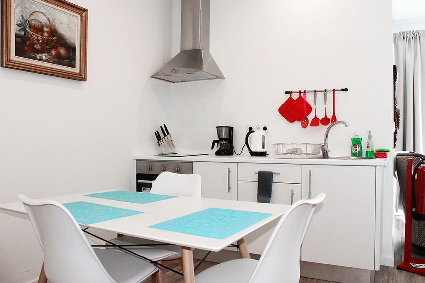 O apartamento de 56m2 conta com uma vista sobre o jardim e montanhas e está equipado com uma kitchenette com tudo o que é necessário para preparar uma refeição ligeira no maior dos confortos sem muitos gastos. A sala de estar tem aquecimento, mesa de jantar, LCD, sofá (pode ser utilizado como cama extra) e saída para a esplanada! A casa de banho dispõe de uma banheira e alguns utensílios e produtos básicos. Nos quartos encontrará um LCD, um armário, mesinhas de cabeceira, secretária e ainda um cofre pessoal. Está igualmente disponível internet Wi-Fi em todo o apartamento e espaço exterior.
