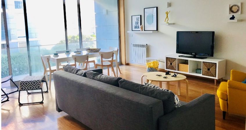 ▪ Apartamento inserido num condomínio de luxo fechado, com piscina e vista para o mar, na praia de Azurara, conhecida pela prática de Surf.