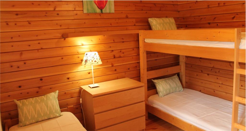 O interior em madeira é muito acolhedor e confortável. O primeiro piso tem uma área comum de sala de estar e jantar com cozinha Open Space e casa de banho equipada com cabine de duche. Aqui, inserem se três quartos com vista magnífica. Dois quartos tem cama de casal e um terceiro quarto dispõe de beliche com dois lugares, cama individual e um berço. Existe uma salamandra para aquecer o ambiente nos dias mais frios.