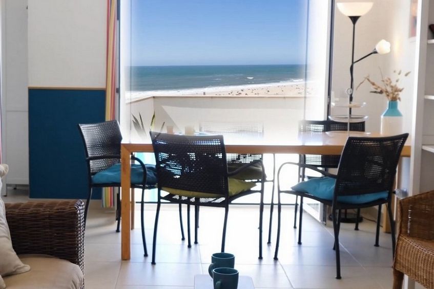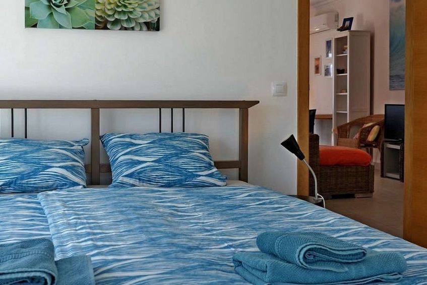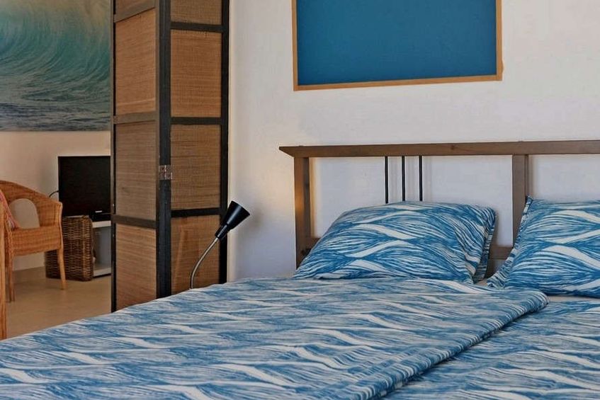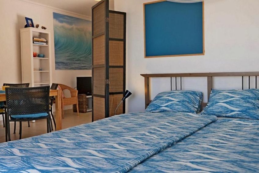 A sala de estar tem uma área de dormir separada com uma cama de casal (160×200) e tem uma vista direta para o mar.