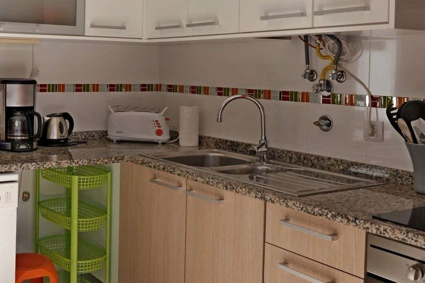 O apartamento está localizado no 3º andar, no último andar e pode ser alcançado por escadas e elevador. O tamanho é de aproximadamente 60 m2 no interior e cerca de 60 m2 no exterior. Um enorme terraço e 2 varandas na frente e na traseira. Está disponível para o máximo de 5 hóspedes. É composto por 1 quarto, 1 sala/quarto,uma casa de banhoe uma cozinha.