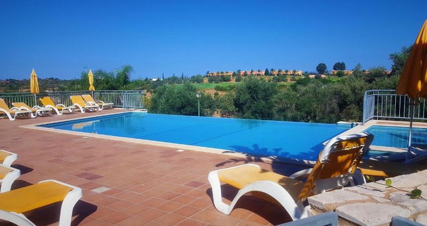 PT - Apartamento com piscina de beiral infinito, 2 quartos, 1 casa de banho com banheira de hidromassagem, sala de estar/jantar, cozinha moderna e equipada, terraço com jardim relvado e barbecue. Inserido no Vale de Pinta Golf & Resort, com campos de golfe, várias piscinas, campo de ténis, restaurante, bar, etc... Com direito a Desconto de 40% no Golfe!