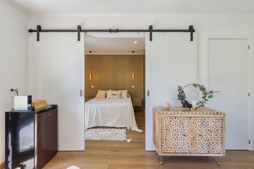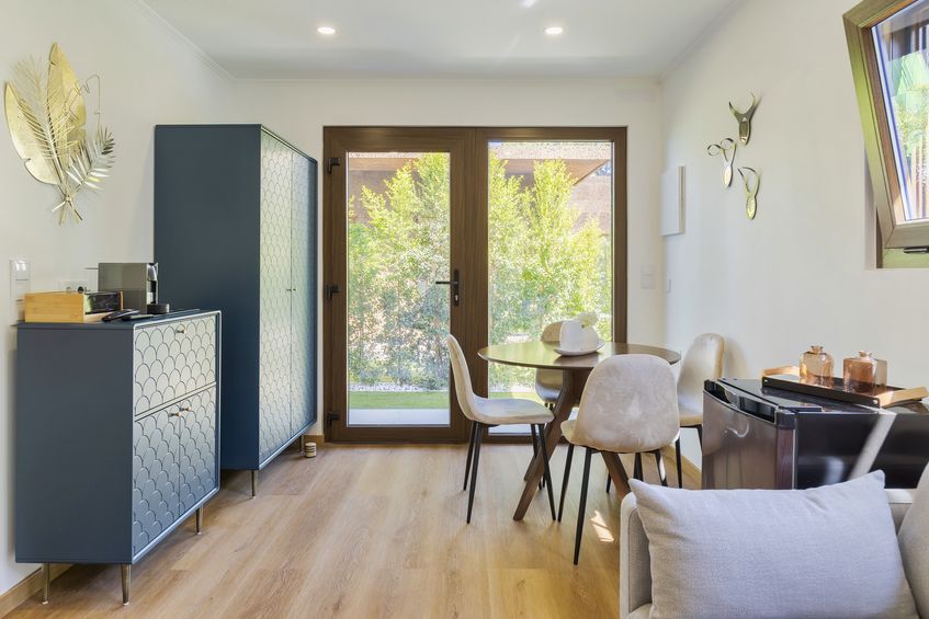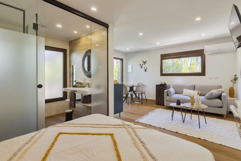 Our suites consist of a suite with a double bed, a living room with a sofa bed, a small fridge and a coffee machine. In addition, we offer air conditioning and Android TV with Wi-Fi internet access.