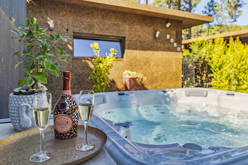 Enjoy a romantic experience in one of our exclusive suites, equipped with an outdoor jacuzzi, in a peaceful setting surrounded by nature, just 3 minutes by car from the stunning and famous Fonte da Telha beach. Don't hesitate to surf the beautiful waves on the coast or, for golf enthusiasts, just 2 minutes away is the magnificent Herdade da Aroeira golf course, with an 18-hole course available for practice all year round.