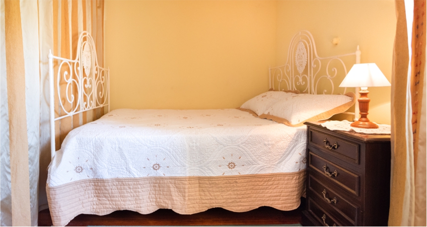 A casa tem um quarto confortável com 2 camas de casal. O banheiro é equipado com chuveiro e toalete. A casa dispõe de um closet, comodidades para passar roupa, produtos de limpeza, aspirador de pó e ventilador.