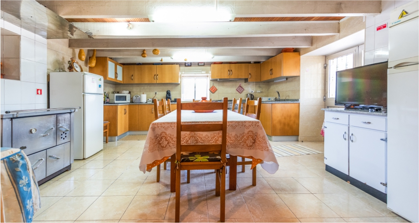 [EN] - This house, located in Santa Maria de Feira, is ideal for 7 vacationers. It offers a bedroom, a terrace and WiFi. The lounge is perfect for unwinding after a day of exploration. Curl up on the comfortable sofa and enjoy a good book in front of the fireplace or take advantage of the amenities on offer, including a TV with satellite channels and WiFi. The kitchen is well-equipped for cooking up your favorite meals. Enjoy your feast around the dining table which seats 8 or outside, on the terrace or on the balcony enjoying views of the mountains.