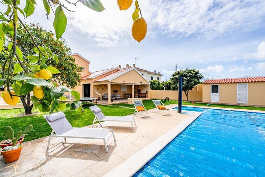 Aninhada no meio de laranjeiras e limoeiros vibrantes, a encantadora villa exala tranquilidade com a sua arquitetura tradicional e ambiente sereno. O interior é banhado por luz natural e possui mobiliário acolhedor, criando um retiro convidativo. No exterior, uma espaçosa área verde com uma piscina refrescante, um pátio com churrasco e assentos confortáveis, oferecem um refúgio idílico para diversão e relaxamento.