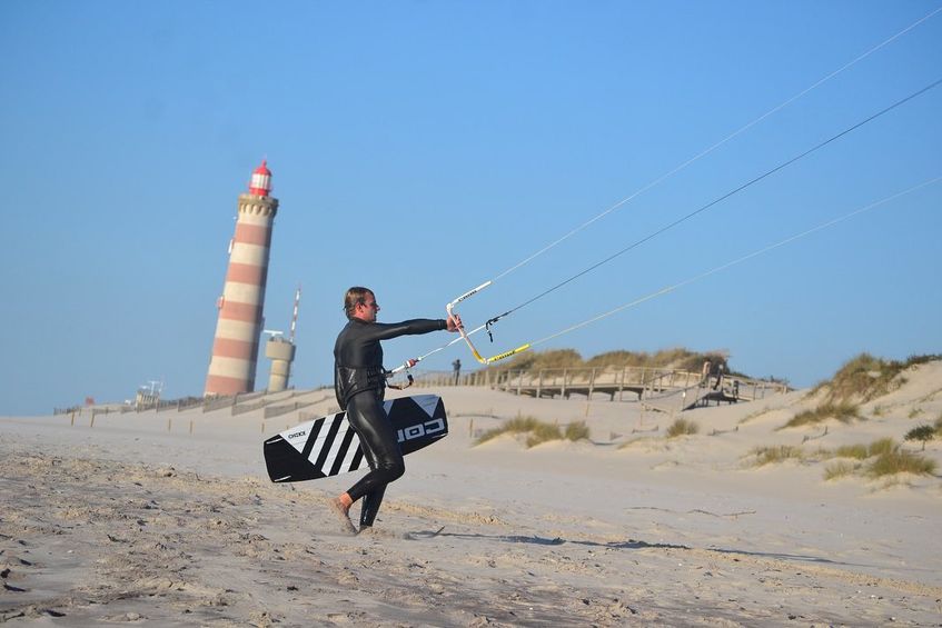 A nossa Escola de kitesurf e surf certificada internacionalmente a apenas uma hora a sul do Porto (Portugal), perto da bela cidade de Aveiro (“Pequena Veneza”) está localizada directamente numa lagoa rodeada por um belo parque e tem um porto próprio do qual dirija-se aos melhores pontos da praia ou da lagoa. Graças à grande situação do vento e do clima, estamos abertos durante todo o ano.