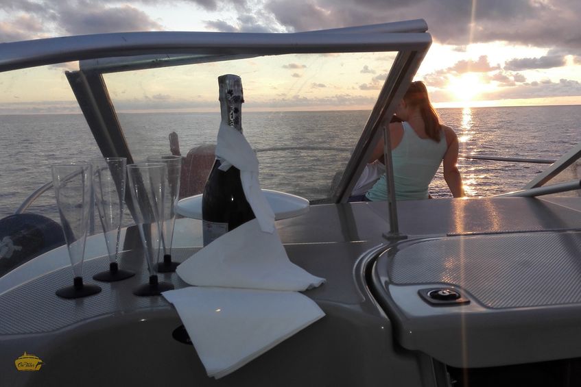Experimente um potente pôr do sol no mar a Sudoeste da Ilha da Madeira. Sintam a brisa do mar acompanhados por um copo de espumante, enquanto o sol e as estrelas mudam de lugar no horizonte.