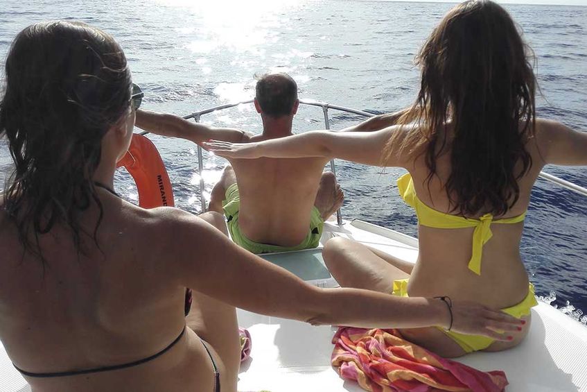 Feel the freedom of swimming and snorkelling near the island's coast. Admire the rocky bottom and the marine life. On the way back, we want to hear about your adventure, enjoy a sunbathe and relax on board the Miranda.