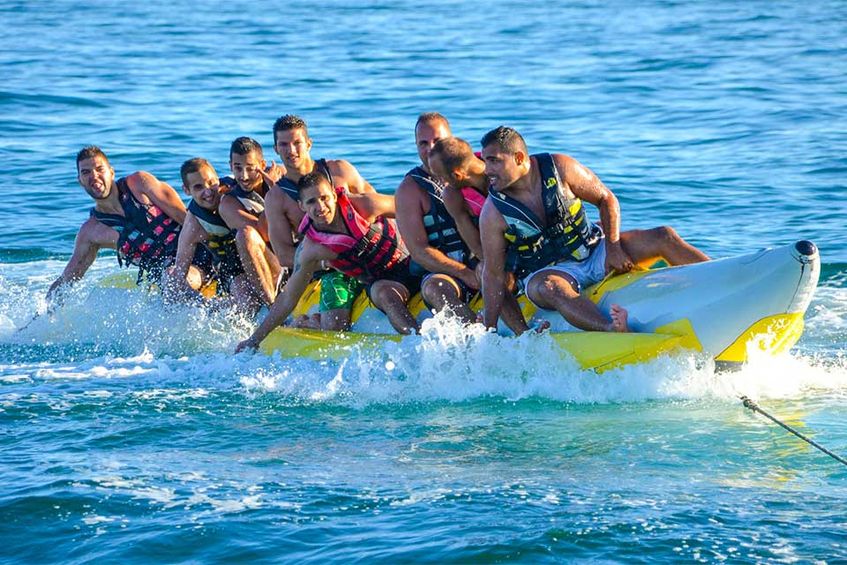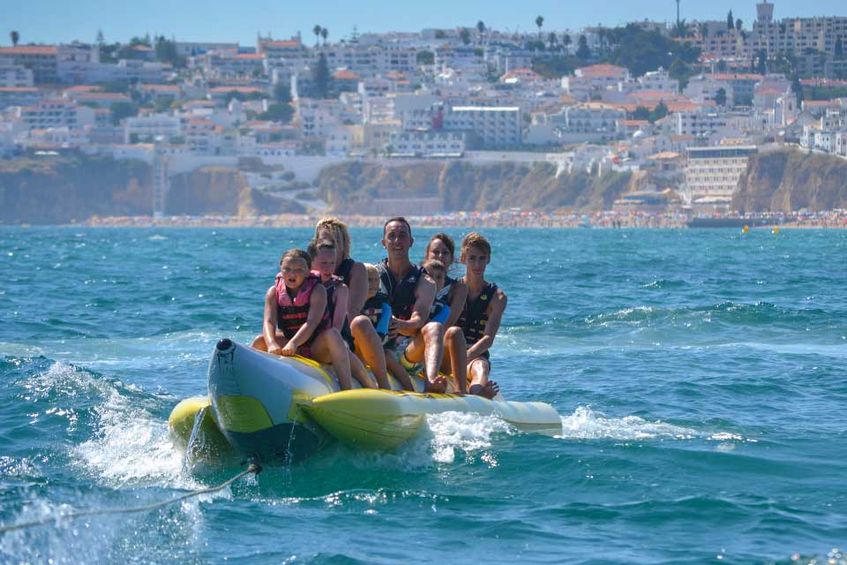 A «Banana» (ou «Tubarão») é de material insuflável e com lotação de 9 passageiros, As voltas têm períodos de 10 minutos de duração. Ideal também para crianças.