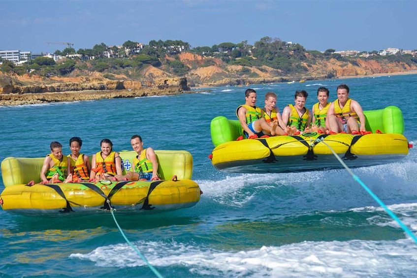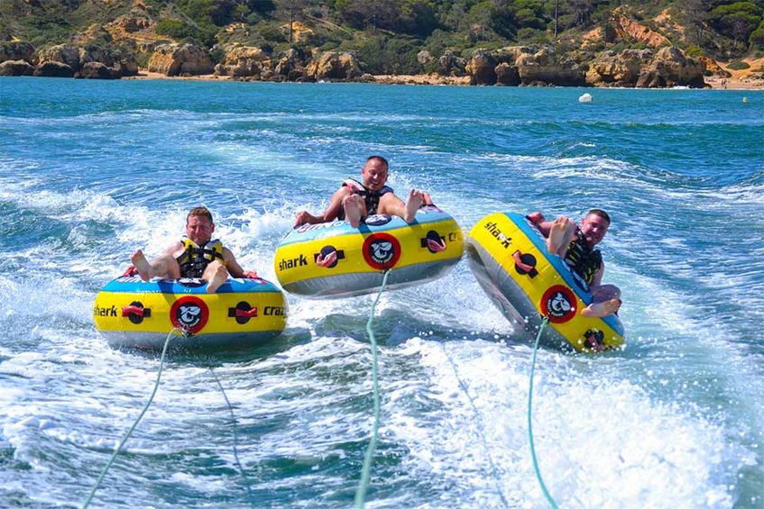 As bóias insufláveis com formato de “donut” são rebocadas por uma embarcação proporcionando sensações incríveis, especialmente nas viragens. Poderão ser puxados até 5 praticantes ao mesmo tempo.