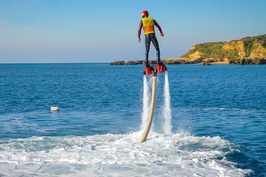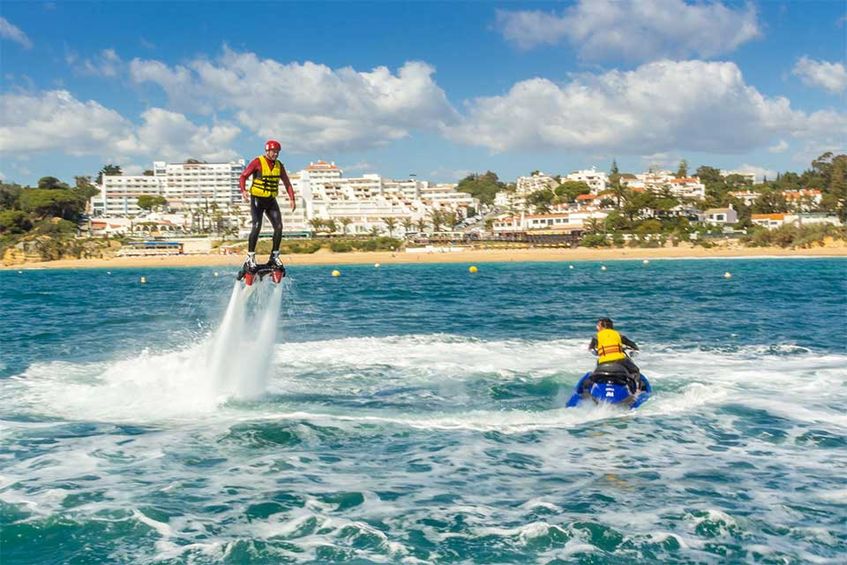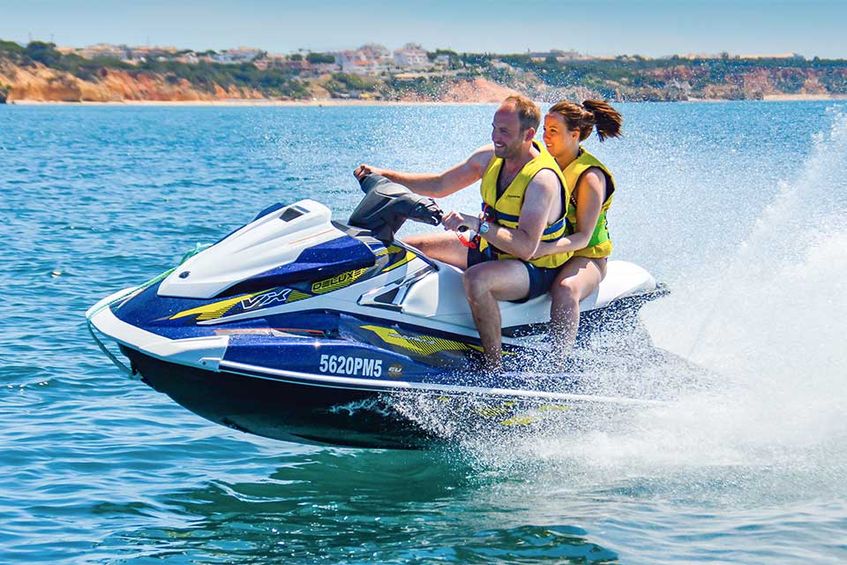 Os clientes recebem instruções na Praia e são deslocados para uma plataforma fundeada a 500 metros da Praia, onde lhe é explicado pelo monitor o funcionamento das motas assim como o circuito devidamente balizado.