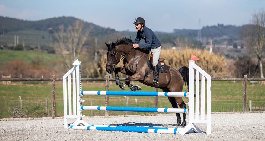 Jumping lessons begin with some gymnastics, driving and approach to jumps and other specific exercises that allow a better and more efficient introduction to the discipline. The goal is to end the grid work with an eight-jumps training course during which all learning will be put into practice.